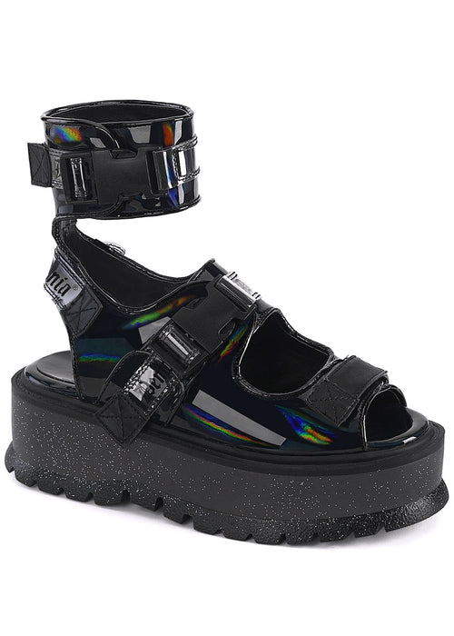 SLACKER 15B Dark Abyss Black Hologram Platform Sandals