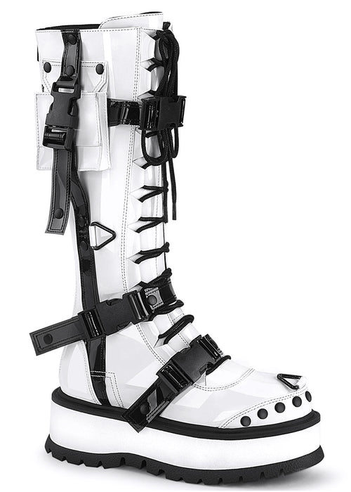 SLACKER 260 Cyberpunk Tech Patent White Platform Boots