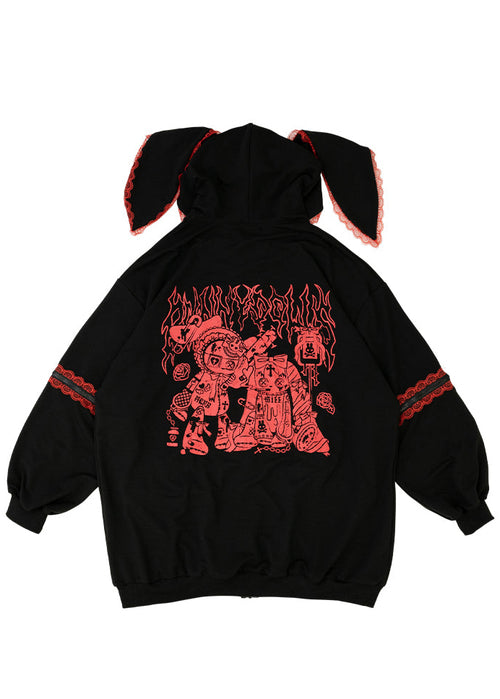 Bunny Dolls Punky Bunny Usamimi Black Red Oversized Zip Hoodie