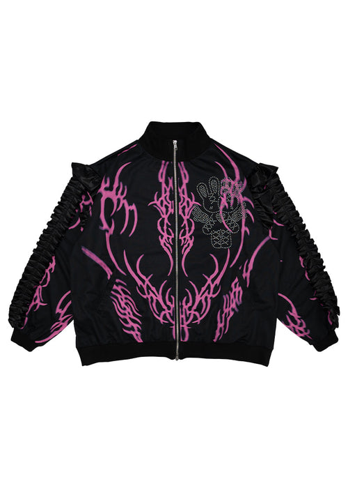 Nightmare Studded Bunny Ruffle Black Oversized Jacket