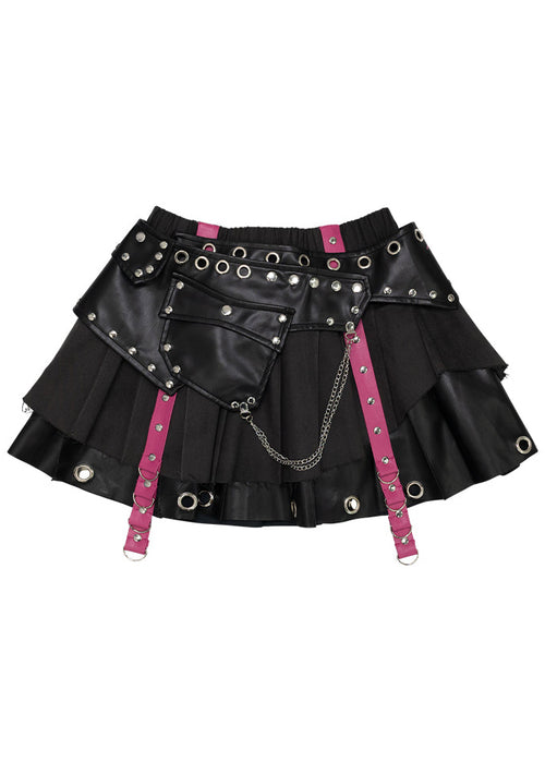 Error Code Cyberpunk Tech Pleated Black Purple Skirt